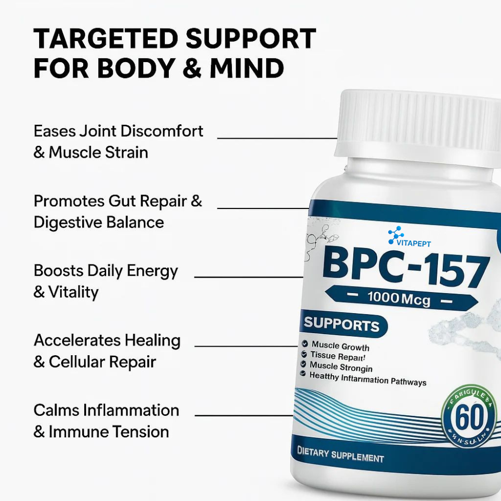 - 1000 mcg of bioavailable BPC-157 (arginine-bound) for superior absorption